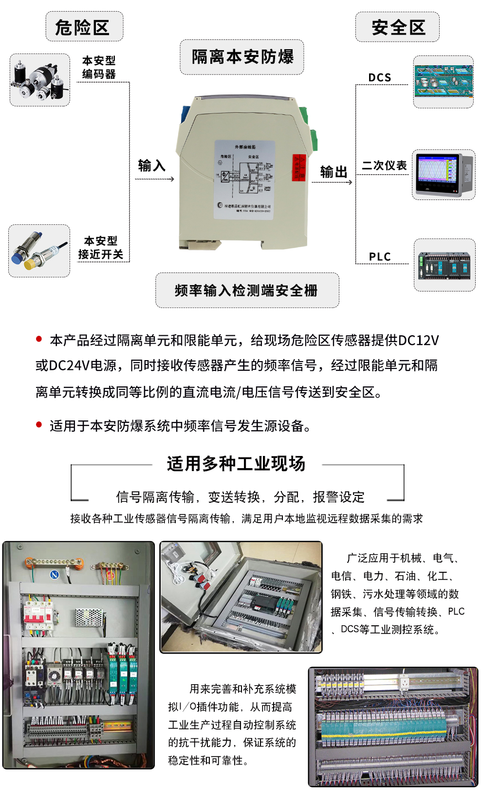 虹潤公司是專業(yè)生產隔離器的國家專精特新“小巨人”企業(yè)。生產的隔離式安全柵涵蓋信號頻率輸入、電壓輸入、電流輸入、熱電阻輸入、熱電偶輸入、開關量輸入等多種產品類型。產品獲得具備減震抗干擾能力的溫度變送器、信號隔離器、一種二端子模塊、無源信號隔離器等4項國家發(fā)明專利,主持起草物聯(lián)網智能溫度儀表、現(xiàn)場設備工具(FDT)接口規(guī)范、工業(yè)過程測量和控制系統(tǒng)用溫度變送器等3項國家標準,以及通信系統(tǒng)多通道數據采集控制終端規(guī)范軍用標準。參與國際5G標準制定,取得智能隔離式安全柵等4項相關軟件著作權。產品廣泛應用于石油、電力、化工,冶金、智能制造、污水處理等諸多行業(yè)。