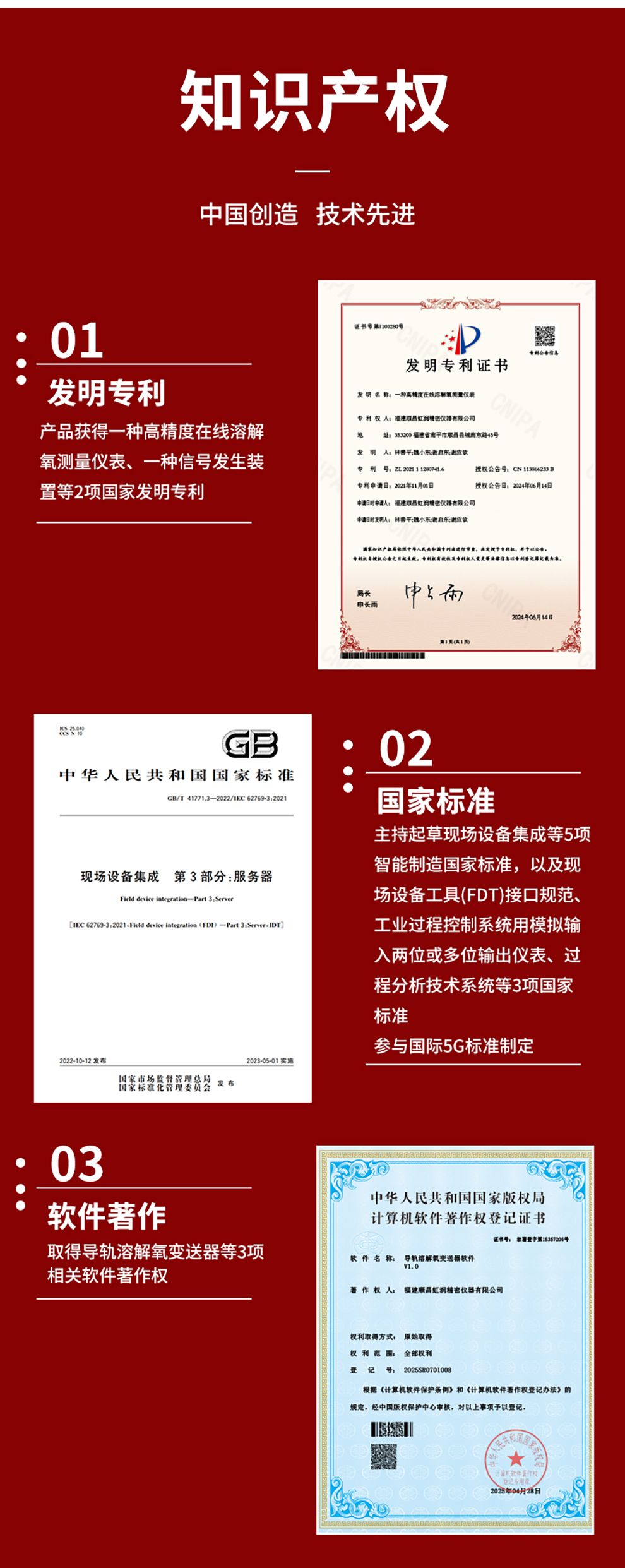 虹潤公司是專業(yè)生產(chǎn)水質(zhì)分析儀的國家專精特新“小巨人”企業(yè)。生產(chǎn)的導(dǎo)軌式溶解氧變送器,具有測量穩(wěn)定不跳字,液晶按鍵操控,變送輸出精準(zhǔn),寬范圍電源供電,RS485或HART通訊等特點(diǎn)。產(chǎn)品獲得一種高精度在線溶解氧測量儀表、智能化控制器、一種信號發(fā)生裝置等3項(xiàng)國家發(fā)明專利;主持起草現(xiàn)場設(shè)備集成等5項(xiàng)智能制造國家標(biāo)準(zhǔn),以及現(xiàn)場設(shè)備工具(FDT)接口規(guī)范、工業(yè)過程控制系統(tǒng)用模擬輸入兩位或多位輸出儀表、過程分析技術(shù)系統(tǒng)等3項(xiàng)國家標(biāo)準(zhǔn);參與國際5G標(biāo)準(zhǔn)制定,取得導(dǎo)軌溶解氧變送器等3項(xiàng)相關(guān)軟件著作權(quán)。產(chǎn)品廣泛應(yīng)用于實(shí)驗(yàn)室、水處理、環(huán)境監(jiān)測、制藥、食品、農(nóng)業(yè)、工業(yè)流程控制等諸多領(lǐng)域。