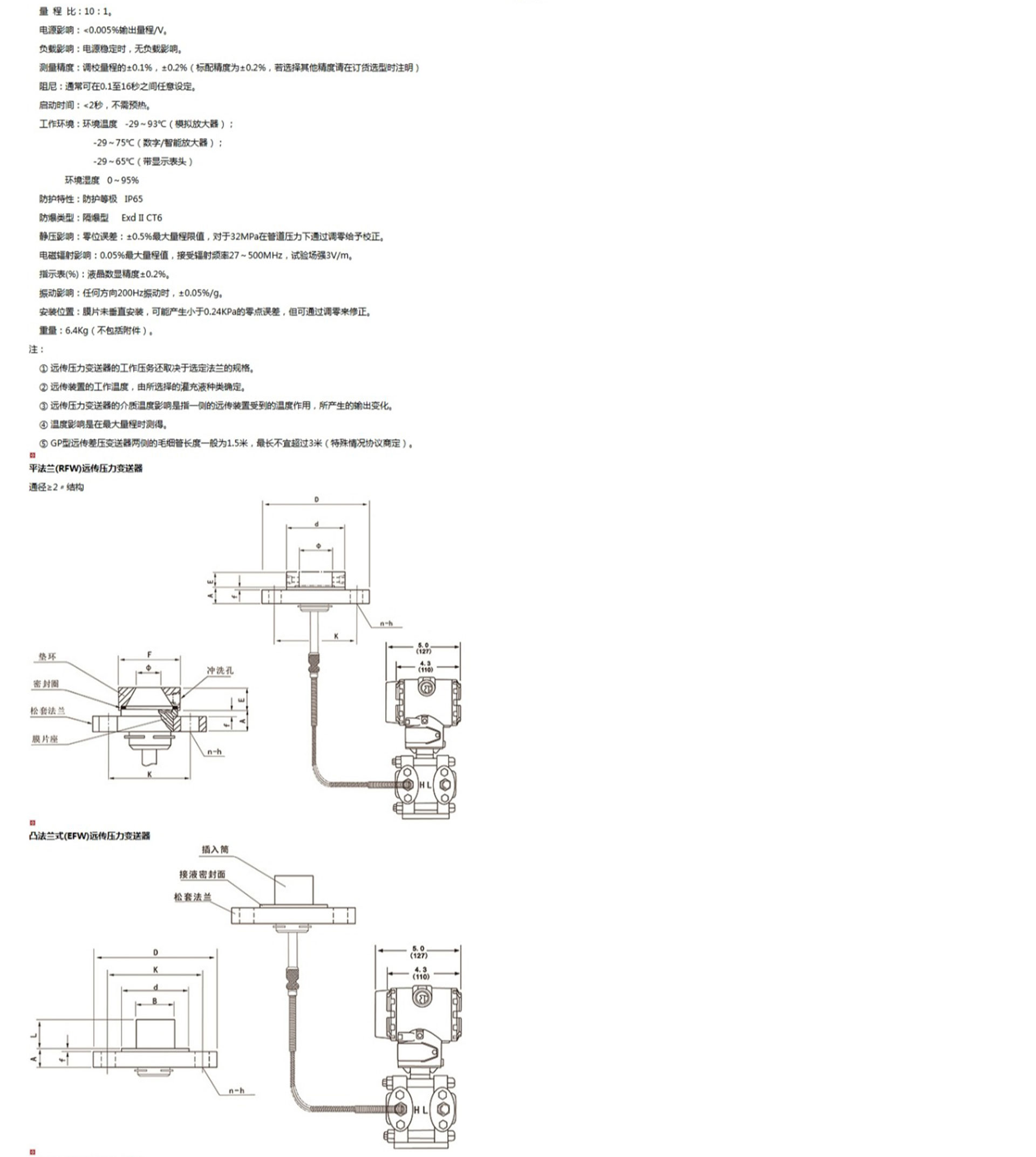 HR-3051GP遠傳壓力變送器是一種通過安裝在管道或容器上的遠傳裝置來感受被測壓力,該壓力經(jīng)毛細管內(nèi)的灌充硅油(或其它的液體)傳遞至變送器的主體,然后由變送器主體內(nèi)的δ室和放大線路板,將壓力或差壓轉換4~20mA.DC信號輸出。